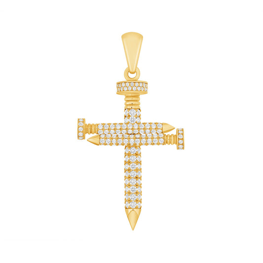 Our CMJ Custom Nail Cross is made in solid gold with VS+ clarity colorless round brilliants on one side making it reversible. Our size small has become a perfect layering piece amongst our male clients and a great statement pendant for our CM women.
